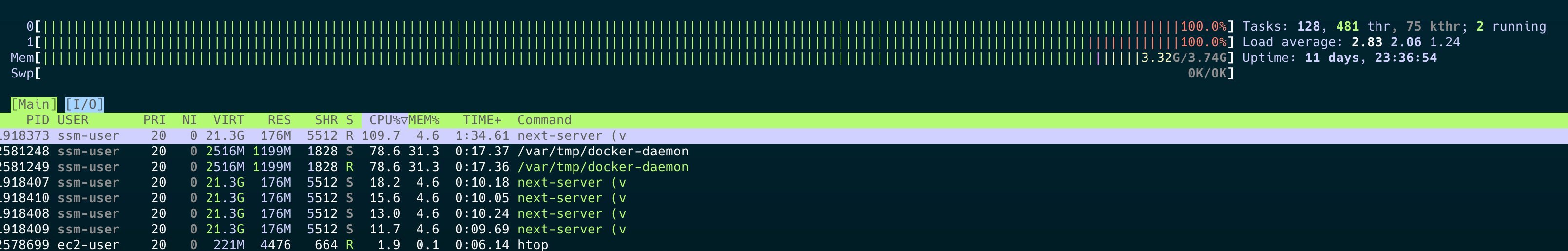 I’m a fan of htop, and I genuinely enjoy watching CPU/RAM/etc. usage on servers. So of course I opened htop to check if there were any unusual processes. Surprisingly enough, the process next-server was eating all the CPU.